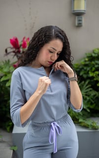 Una combinación de funcionalidad y estilo moderno. La filipina con cierre en el pecho y mangas 3/4 proporciona comodidad y practicidad para las jornadas largas, mientras que el pantalón jogger asegura un ajuste perfecto y elegante. Ideal para quienes buscan un look sofisticado sin sacrificar movilidad.